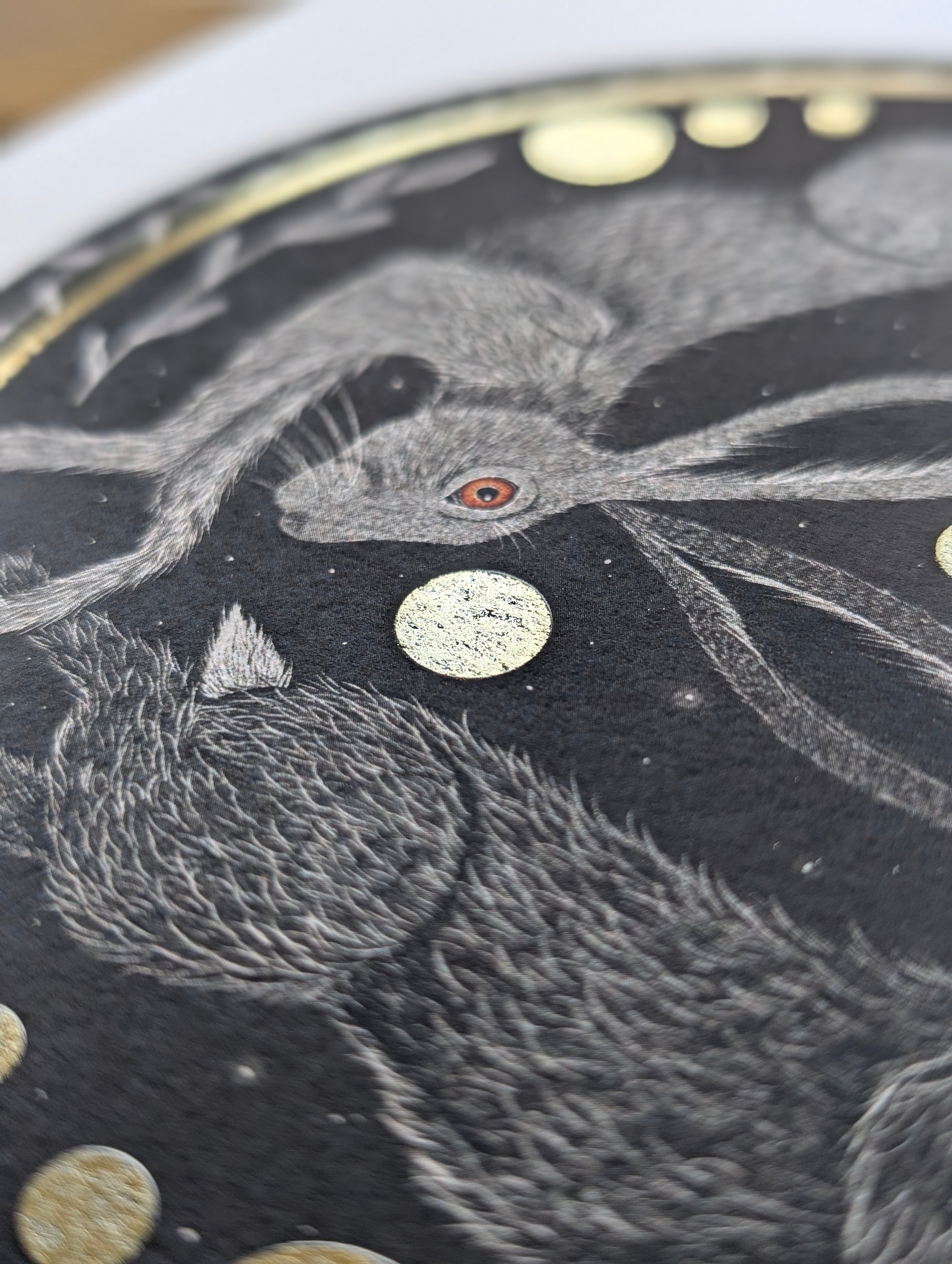 The physical prints are finished with gold foiling - please see photos for examples.